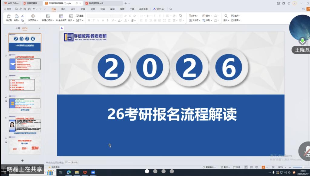 近日,电子与信息工程学院党委统筹安排,多角度、多方位,多措并举推进2026届毕业生高质量就业及升学工作,切实为2026届毕业生办实事、解难题。为精准服务学生考研需求、助力2026届毕业生洞悉考研形势、掌握科学报考方法,10月17日,电子与信息工程学院成功举办2026届毕业生线上考研报考指导会。本次会议特邀国内知名考研规划专家王晓磊老师主讲,吸引了近百名有考研意向的毕业生踊跃参与。