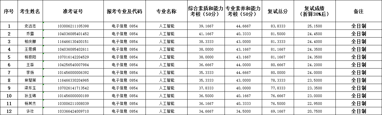 电子与信息工程学院2026年硕士研究生第二批调剂考生复试成绩(公示)