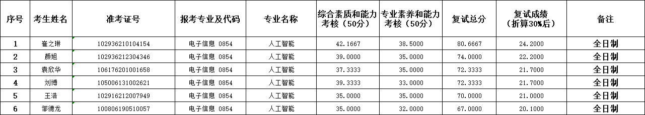 电子与信息工程学院2026年硕士研究生第一批调剂考生复试成绩(公示)