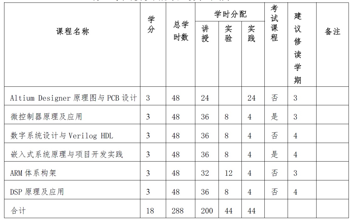 嵌入式系统设计微专业教学计划表